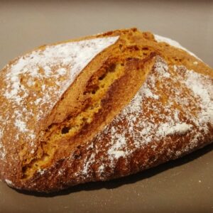 Ingrédients : Farine de petit épeautre complète (T110 ou T130), Levain de blé (farine de blé T80, eau), Sel de Guérande