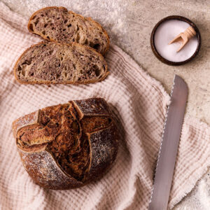 Ingrédients : farine de blé T80, levain de blé, sel, graines de lin brun, graines de lin doré, graines de tournesol, graines de sésame.